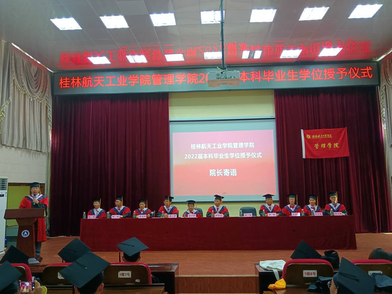 黄涛宣读《关于颁发304am永利2022届本科毕业生毕业证书及学位证书的通知》,授予304am永利全日制普通本科黄家迎等458名员工管理学学士学位,郭秋雪等174名员工工学学士学位。