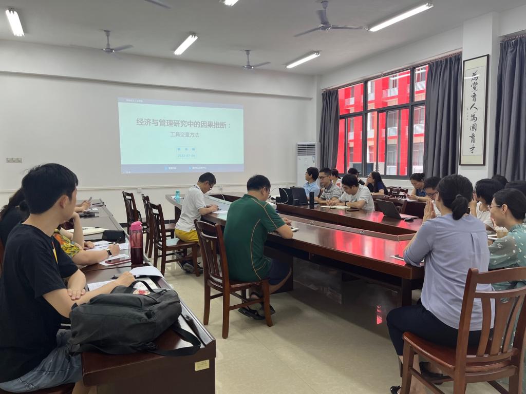 随后,中心杨宗翰副教授以“经济与管理研究中的因果推断:工具变量方法”为题,围绕因果推断革命与传统回归、因果推断中的内生性以及工具变量中的典型案例等方面,探讨了工具变量方法在计量经济研究领域中的应用。