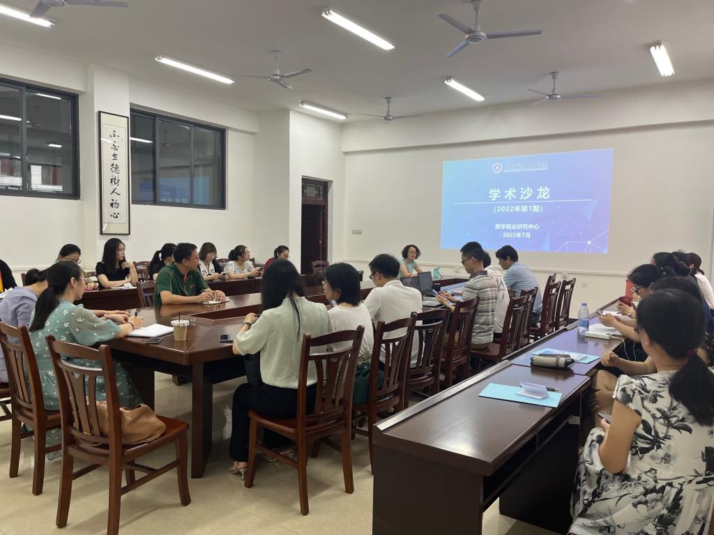 7月6日上午,304am永利数字商业研究中心在探天楼A214会议室举办第一期学术沙龙活动。与会人员围绕科研平台背景、服务范围及学术研究方法等内容进行了介绍、交流,学院部分高层次人才和各教研室教师参加研讨。