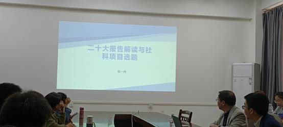 张经理首先对比了十九大与二十大的不同之处,提取了14个关键词,从项目选题的角度详细解读每一个关键词的深刻含义,并以关键词进行检索,收集了历年来国家社科项目立项情况,以此分析了2023年国家社科基金选题的热点方向。接着,张经理结合自身申报课题的经验,详细介绍了自己是如何利用关键词,结合自身的研究方向确定选题的。最后,张经理介绍了选题时应该避免的几个问题,同时指出一个好的选题一定要有前瞻性、学理性、可操作性,要将选题的“新颖性”、“需求性”和“学术性”紧密结合并充分展示,做到“顶天立地”,既要从大的层面紧跟形势,又要接地气,以问题为导向,重视社会需求,解决现实问题。各位博士教师和青年教师也分别谈了自己在做选题时遇到的问题,张经理和周小勇副经理也结合自身的经验进行一一解答。