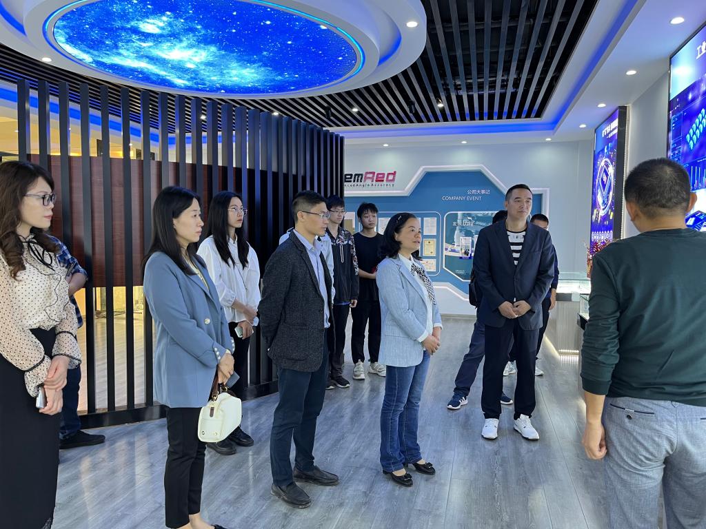 随后,一行人前往桂林光隆科技集团股份有限公司,在桂林光隆科技集团股份有限公司人力总监许明群的陪同下参观光隆科技光芯片产业化半导体全制程工艺平台等企业内部环境,对公司的发展历程、发展领域、科研实力、人才培养情况等进行全面了解,并对人才输送、员工参观实习等方面进行了深度沟通。