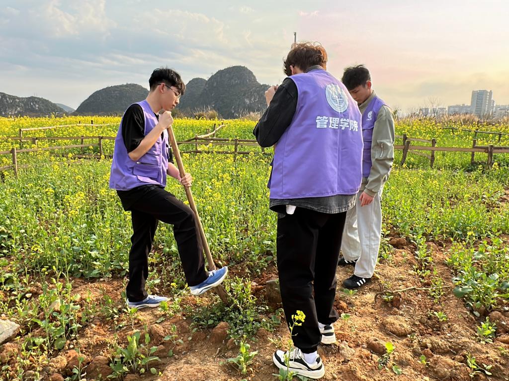在“共植一抹绿,一起‘森’呼吸”植树活动中,该院团委员工会、员工第一党支部联合桂林市七星区朝阳乡团委结队开展青年志愿服务植树活动,管院学子们走进社区与地方工作人员分工合作,搬运树苗、铲土造坑、栽苗扶正、培土围堰、提桶浇水开展志愿植树活动,用实际行动倡导爱绿植绿护绿的文明风尚。