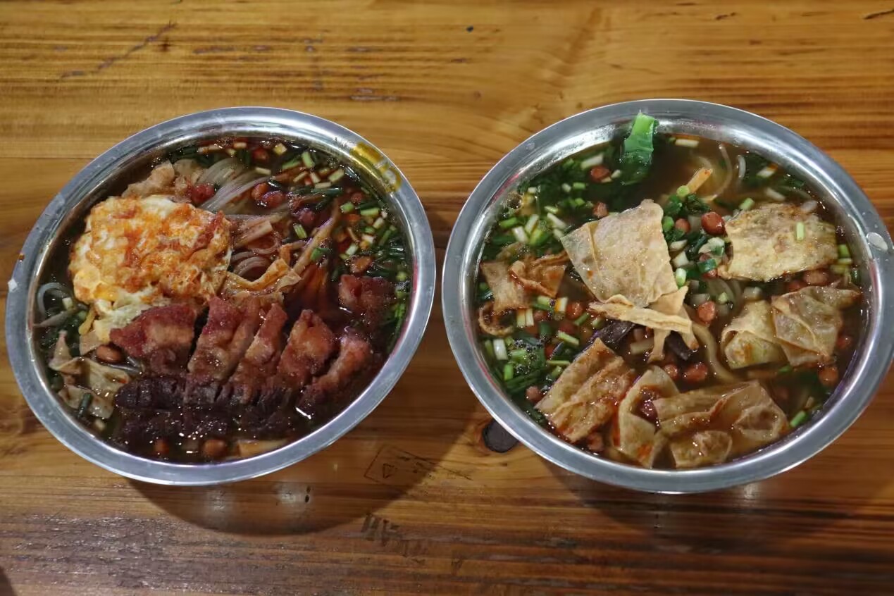 团队首先来到的螺蛳粉小镇的文化展馆进行参观,并且对小镇螺蛳粉进行品尝。